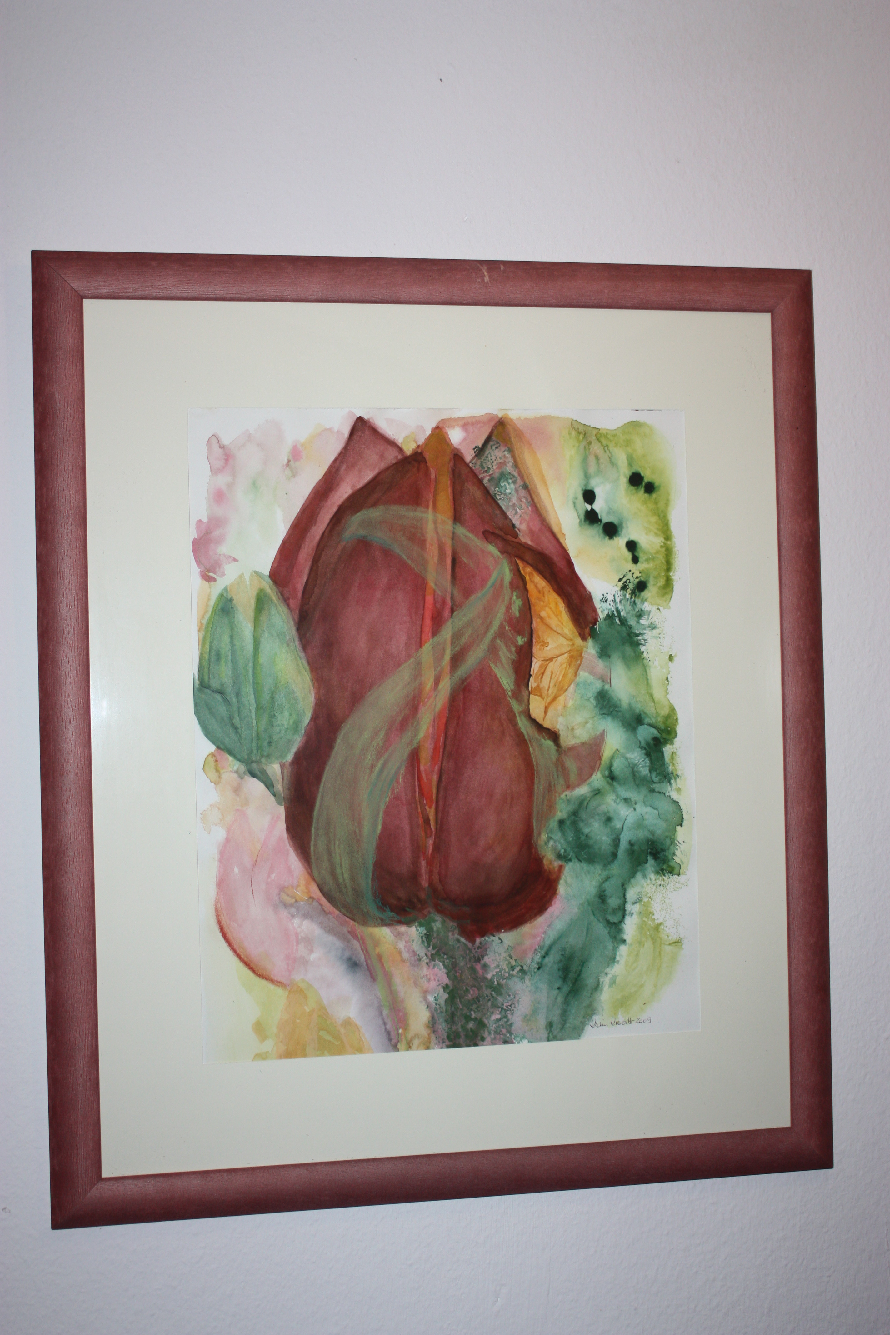 Viele Bilder von Karin Krewitt sind naturalistisch „angehaucht“. Bäume, Blumen und Tiere sind ihre Lieblingsmotive. Seit einem Jahr widmet sie sich auch der Monotypie. Darunter versteht man eine Farbtechnik, deren Motive sich erst während des Malprozesses herausschälen.